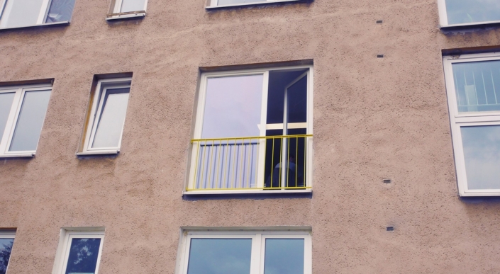 Die Bibliothek befindet sich im Neubau, Aufgang C, erster Stock links. Von außen erkennst du sie am gelben Geländer.
