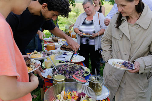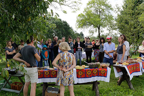 The shared meals are an invitation to neighbors, visitors, and anyone who wants to spend time together, eat together, engage in conversation, and share the collective experience of a communal table.