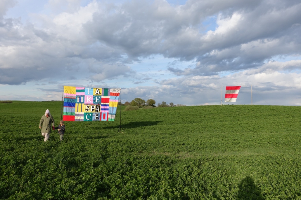 Mit ihren großformatigen im Außenraum installierten Stoffcollagen regt Bettina Mileta zu einer anderen Wahrnehmung von Textilien an. Mit entschiedener Selbstverständlichkeit nehmen ihre textilen Installationen den Raum ein: Sie kontrastieren ihre Umgebung, sind bunt, bewegen sich im Wind und erobern das Feld. In Libken mischen sie sich spielerisch in die Infrastruktur des Geländes ein, legen sich über Wäscheleinen und verkleiden den grauen Beton.