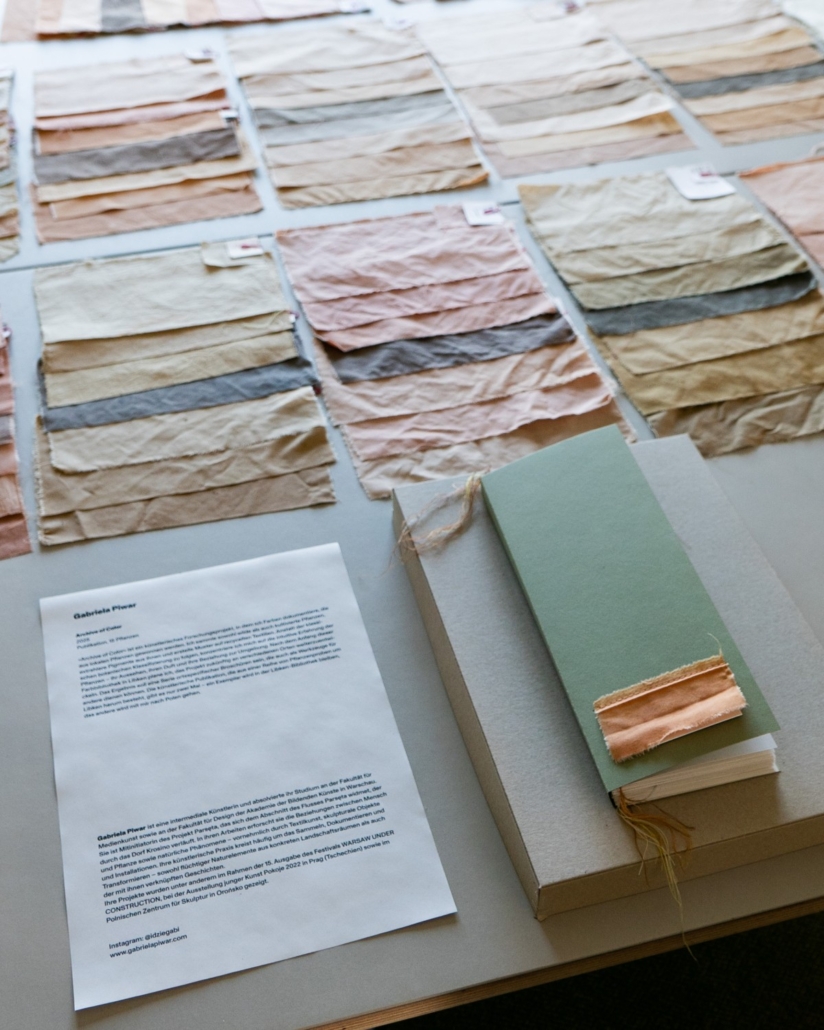 Archive of Color is an ongoing artistic research project in which I document colors derived from local plants. I collect both wild and cultivated species, extract pigments from them, and create samples on recycled textiles. Rather than following botanical classifications, I focus on an intuitive experience of each plant – its color, scent, and connection to place. The project began in Libken during my residency and will continue to evolve in new locations. The outcome will be a series of site-specific publications that may also serve as tools for other creators. The booklet, featuring samples from the surroundings of Libken, exists in only two copies – one remains in the Libken library, and the other I brought with me to Poland.