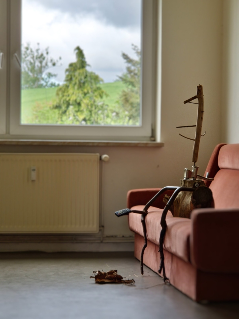 During the two-month international residency in Libken, I continued my participatory projects Rural Art Gallery and Aphrodite. After initially getting used to a new place far removed from my daily routine I significantly expanded the scope of my activities. The “into the fields” residency gave me personal space to carefully experience my family’s grief and accept the passing of time in the context of the constant transformation of nature. On the other hand, the trend in social media of denying the process of aging, uselessness, slowing down, and physical disability definitely distances us and contradicts the laws of nature. This dichotomous experience became the pretext for creating the rePlant Project – objects made from what has been rejected by both nature and technological progress. Old, dry, decaying branches moved me and captivated me with the beauty of the traces of passing time left on them. In a similar way, I was moved by rusty parts of broken devices abandoned in the field, which were once designed to improve our human life. The trend of staying beautiful, healthy, and active for as long as possible begins innocently with improving one’s appearance, working on one’s body, and figure. We cling to the promise of a long life in good health, and with age, we interfere more and more with the biological mechanisms of the body. We transplant, implant, and replace parts of our bodies as if we were in a car repair workshop. Frighteningly, medically unnecessary procedures, driven by vanity and the economics of beauty, lead to physical impairment and are becoming widely accepted as the canon.