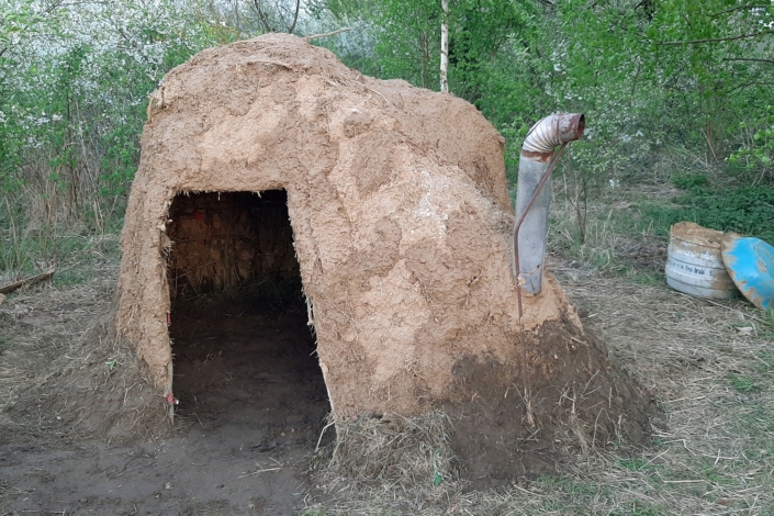 3. Sophie Innmann / Jitka Králová / Belia Zanna Geetha Brückner / Markéta Fagan / Katarzyna Łyszka Łyszkowska / Gabriela Piwar, Sauna, 2025, Haselnusszweige, Lehm, Stroh, Ofen. Schenkung an Libken e.V., 2025
